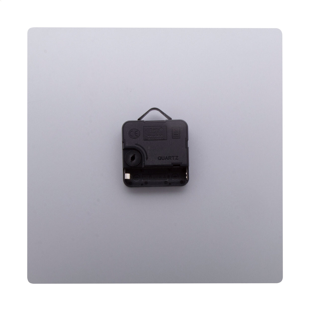 Pendule murale composite en aluminium brossé sur mesure avec impression quadri de forme carrée. Fonctionne avec 1 pile AA, livrée sans pile. Le prix comprend l'impression LED UV. Quantité minimum : 25 pièces.