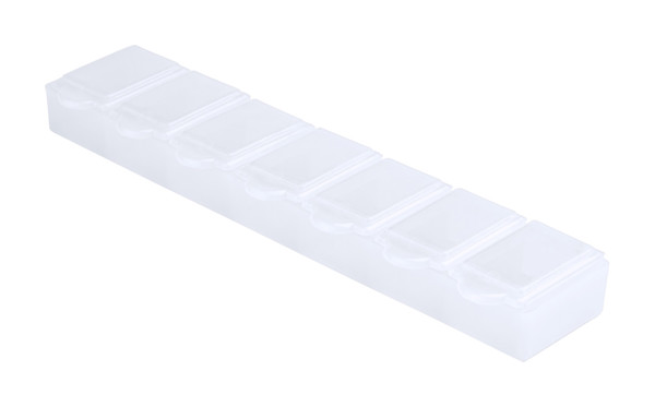 Pilulier hebdomadaire en plastique avec 7 compartiments.