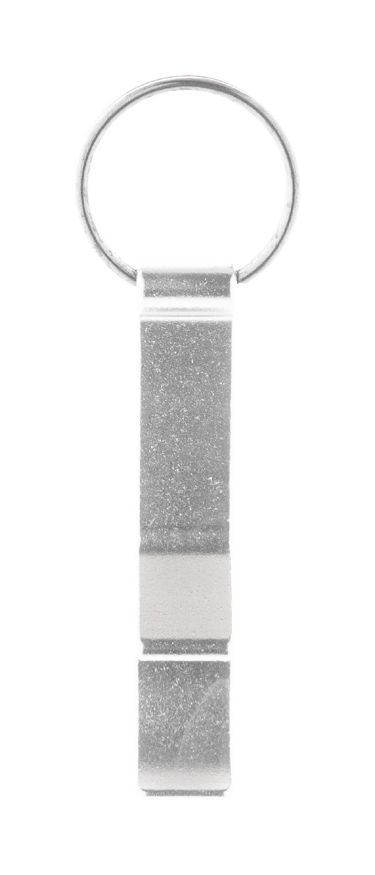 Porte-clé en métal décapsuleur et ouvre-boîte en aluminium recyclé.