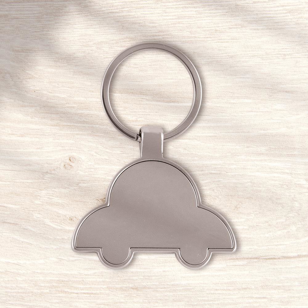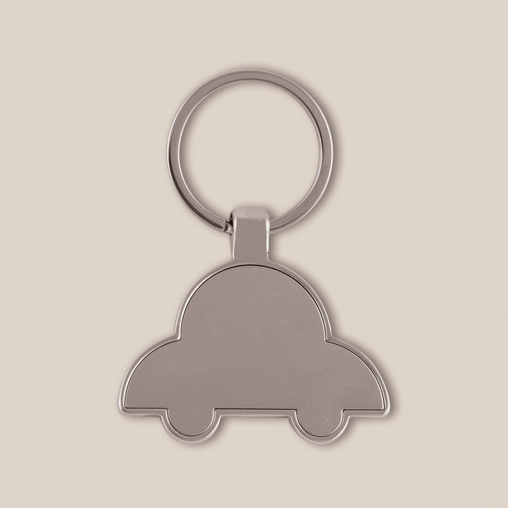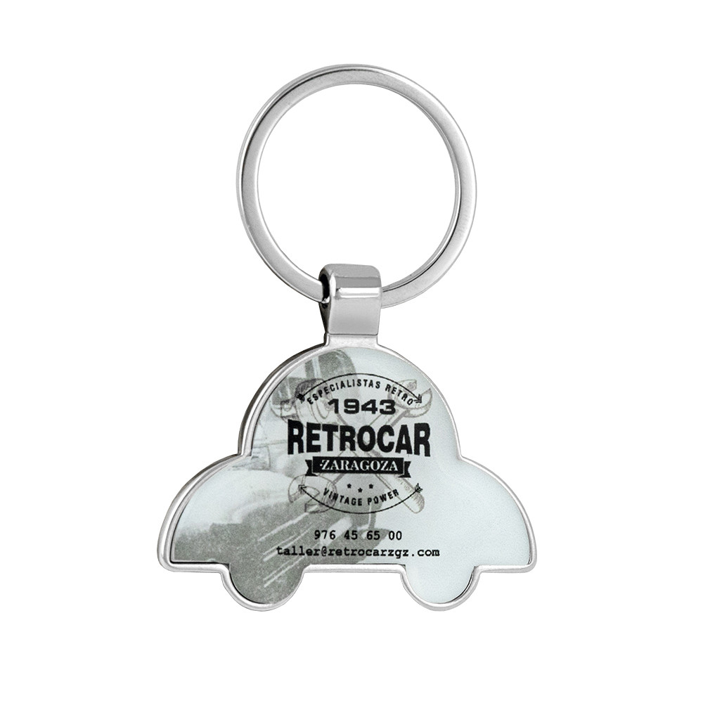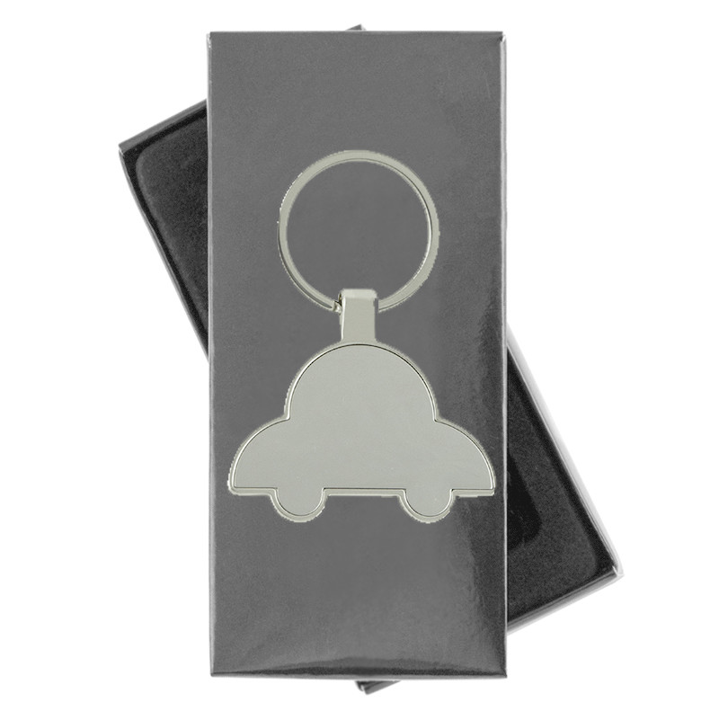 Porte-clés en forme de voiture fabriqué en métal avec finition brilliante. Apte pour des domings adhésifs. Présenté en boîte noire individuelle.