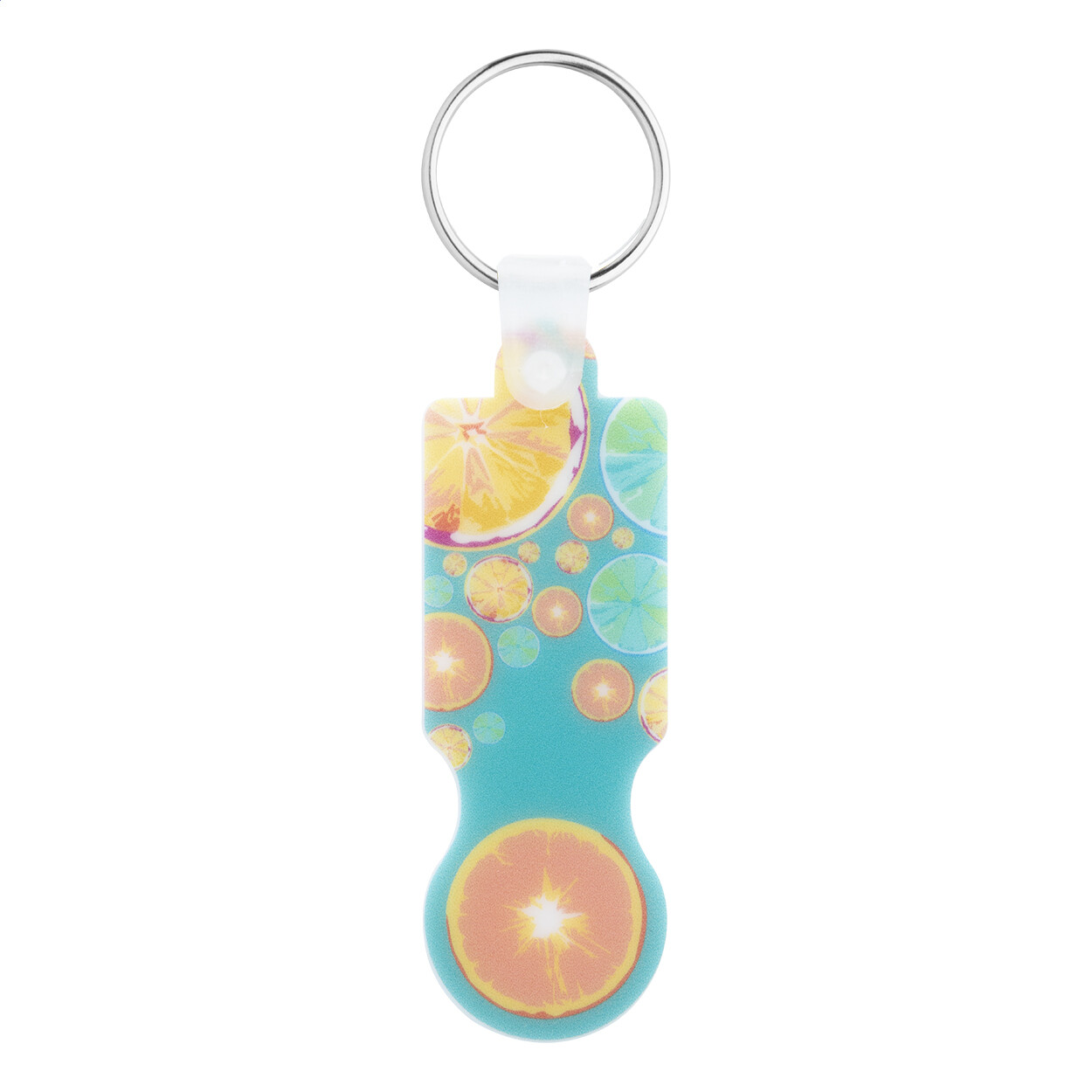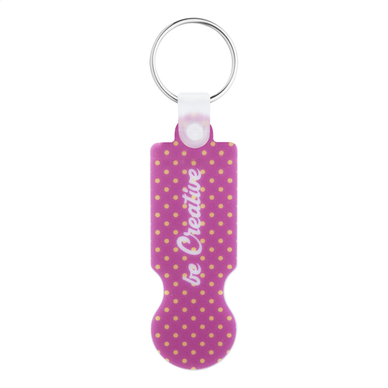 Porte-clés jeton en plastique personnalisable. Le prix inclut l’impression UV Led sur un côté. Quantité minimale: 200 pcs.