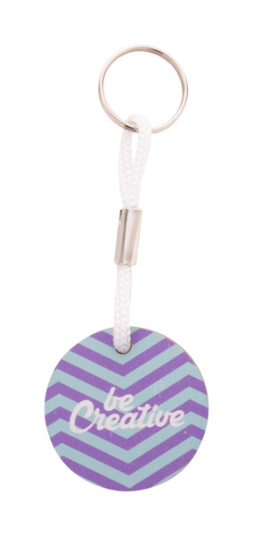 Porte-clés de forme ronde en contreplaqué bouleau avec cordon en polyester coloré et impression quadri. Le prix comprend l'impression UV LED sur un côté. Quantité minimale : 200 pièces.