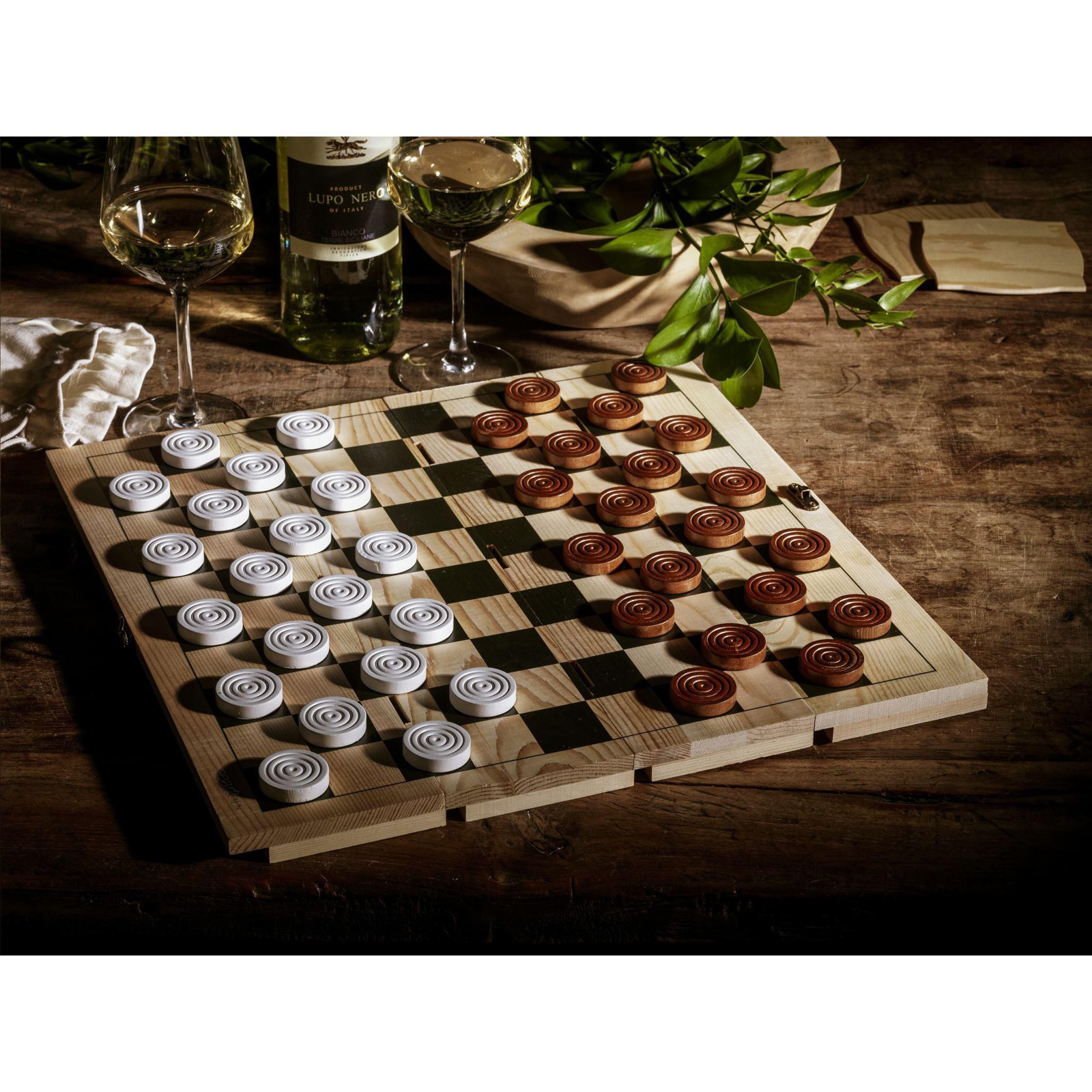 Rackpack Gamebox Checkers : un coffret cadeau à vin et un jeu de dames en un. Un coffret cadeau pour une bouteille de vin. La boîte s'ouvre complètement pour révéler un jeu de société complet. Comprend des pions de jeu de dames en bois dans une pochette en toile robuste. Le cadeau complet pour une soirée jeux réussie. Rackpack : un coffret vin en bois certifié FSC 100% avec une nouvelle seconde vie ! • convient pour une bouteille de vin • bois de pin, certifié • vin non inclus. Emballage par pièce.