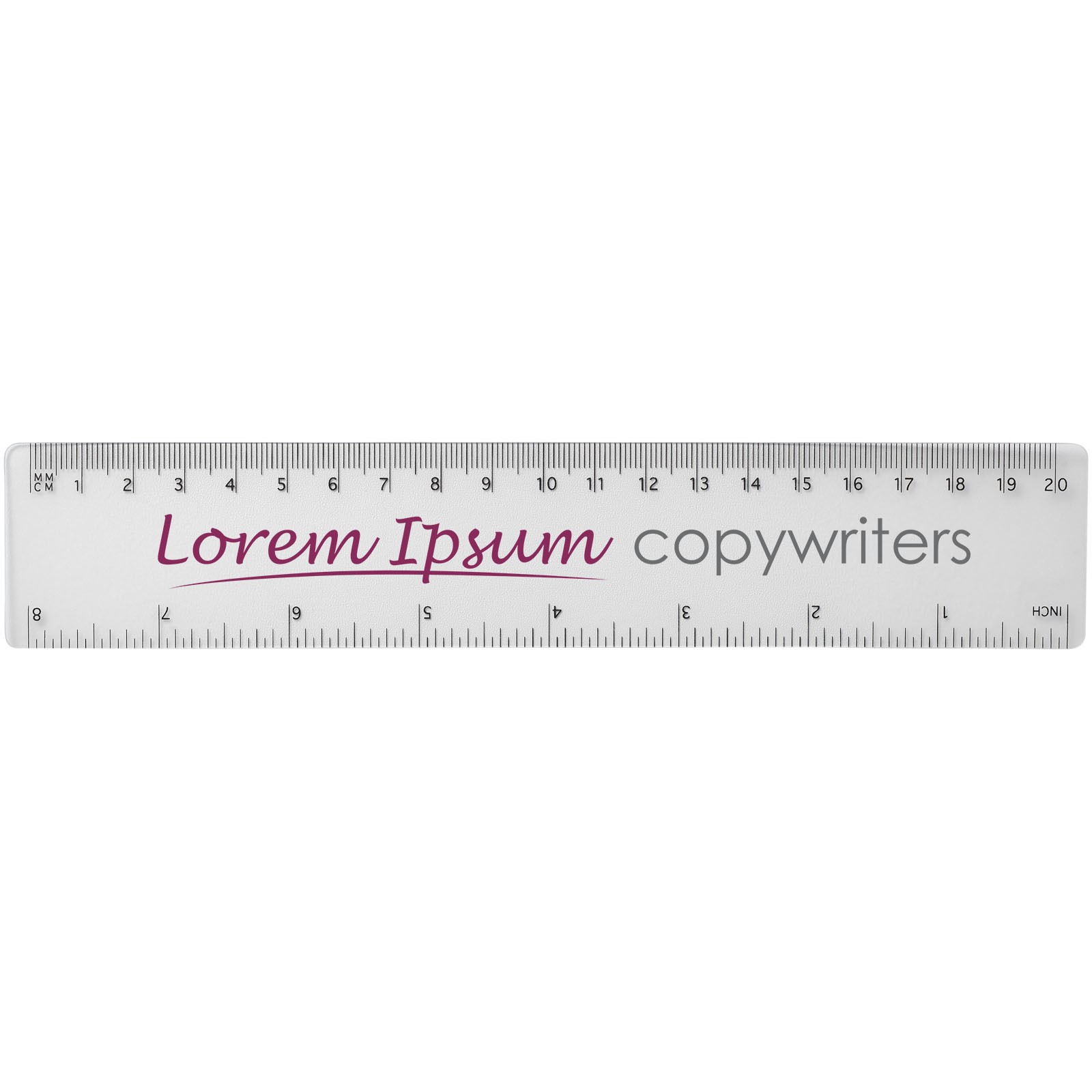 Règle en plastique solide avec mesures en pouces et en centimètres. Merci de noter que les indications de mesures sont imprimées en même temps que la personnalisation. Les règles non personnalisées n'auront donc aucune indication de mesure.