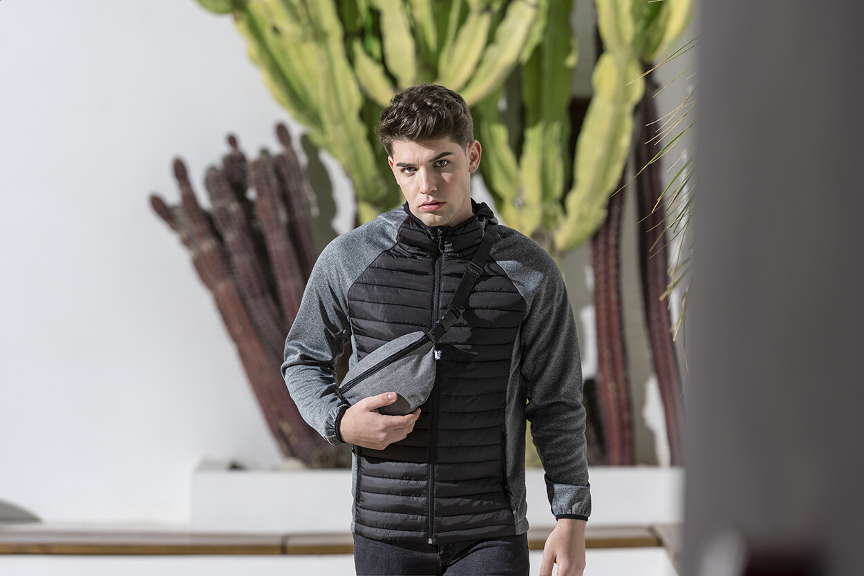 Sac banane RPET avec compartiment zippé et bandoulière réglable. Labélisé RPET. Polyester RPET 600D.