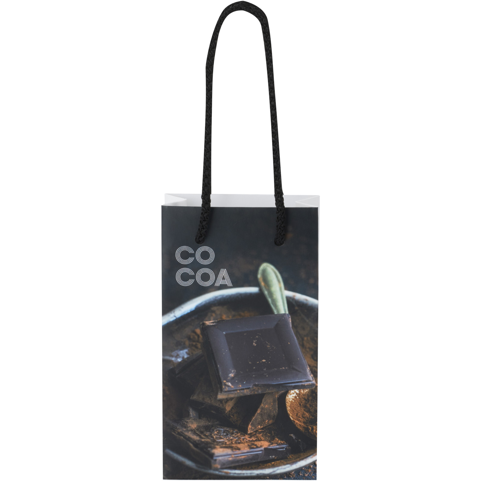 Petit sac en papier integra de 170 g/m2 mat artisanal (9,5 x 4 x 17 cm) avec poignées torsadées en plastique. L'avant et l'arrière personnalisables offrent suffisamment d'espace pour l'impression d'un logo, ou de tout autre design, ce qui en fait un excellent outil de marketing commercial. Fabriqué en Europe. 100% recyclable.