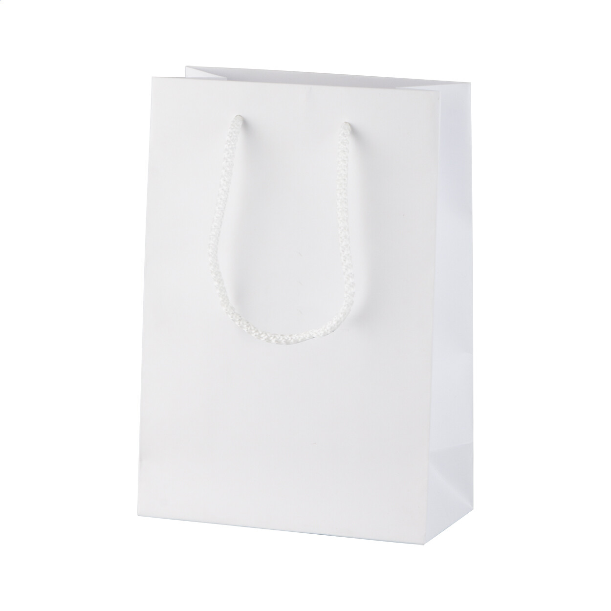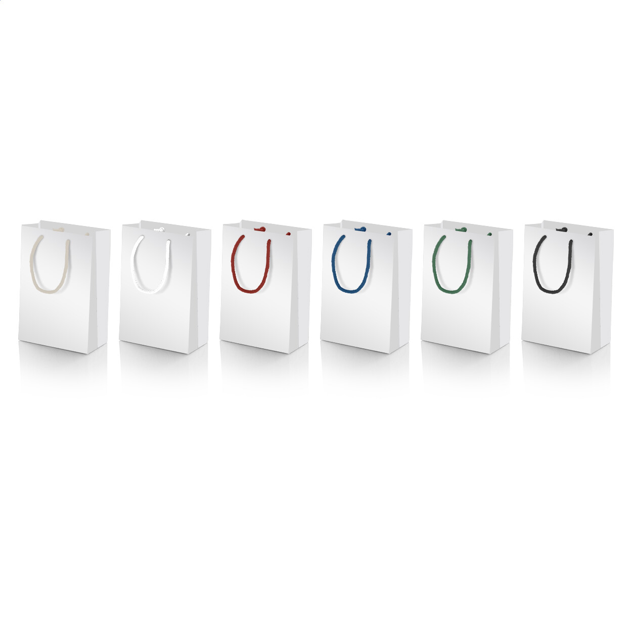 Sac boutique en papier sur mesure avec poignées en polypropylène. Avec impression offset en couleurs. Quantité minimale de 500 pièces.