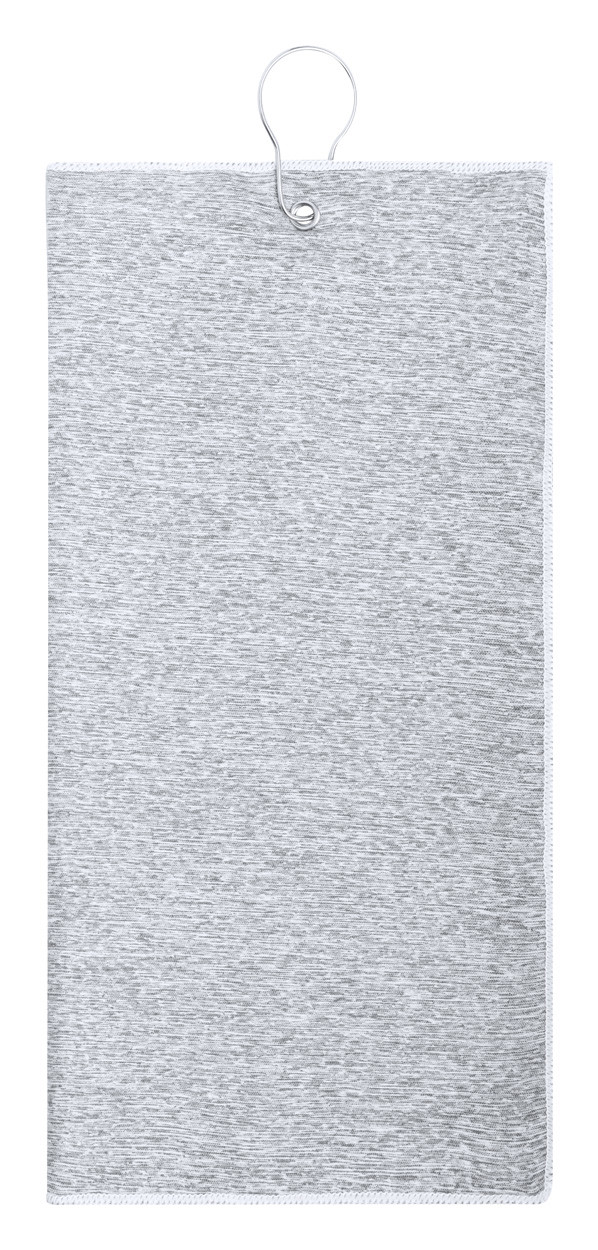 Serviette de golf double face avec cintre en métal et impression en sublimation sur un côté. 100% coton + 100% microfibre, 400 g/m². Le prix comprend l'impression en sublimation. Quantité minimale : 50 pièces.