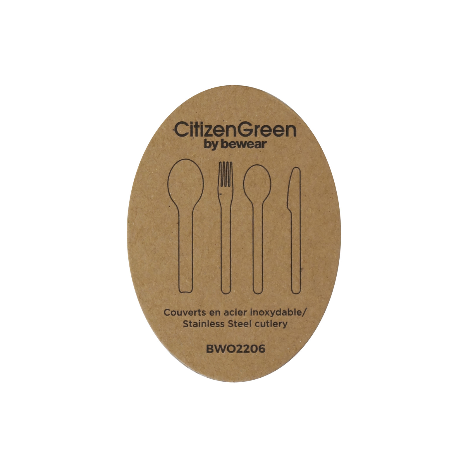 Ensemble de couverts en bambou naturel. Cet ensemble se compose d'une cuillère, d'une fourchette et d'un couteau dentelé. Chaque ensemble est fourni dans une pochette en coton individuelle.