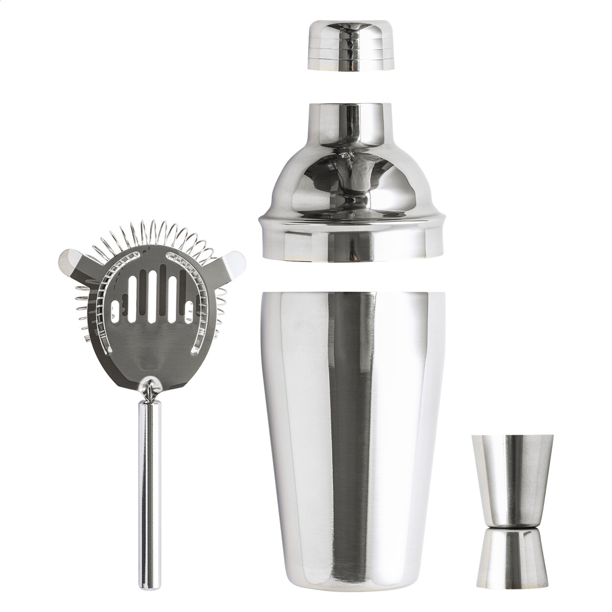 Set à cocktails en acier inoxydable avec shaker de 550 ml, doseur et passoire.