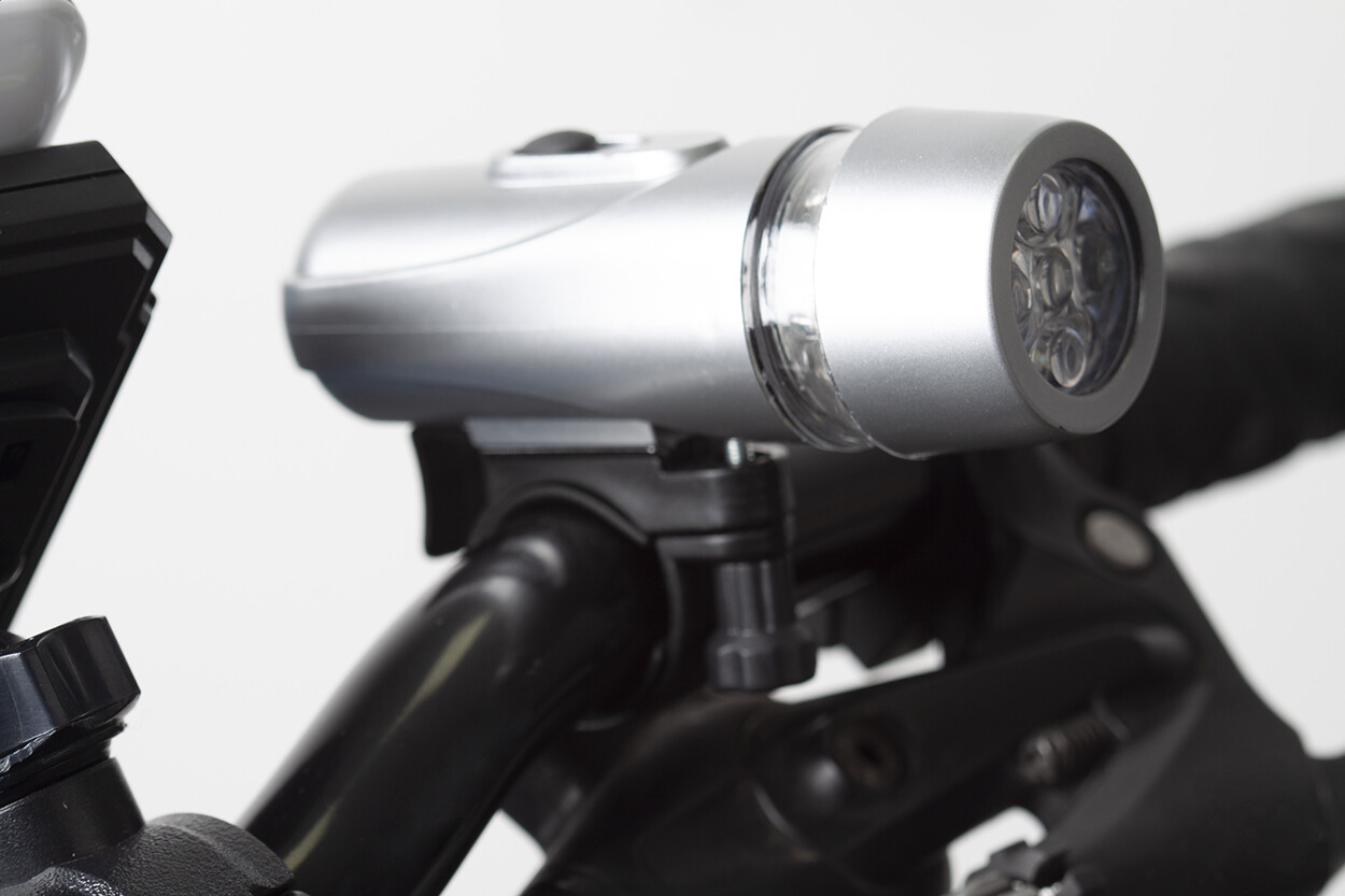 Set de mini lampes pour vélo comprenant des lampes LED blanches et rouges avec une attache élastique. Peuvent être réglées pour diffuser une lumière continue ou des flashs rapides. Inclus : piles et mode d'emploi. Par ensemble dans une boite solide avec fermeture magnétique.