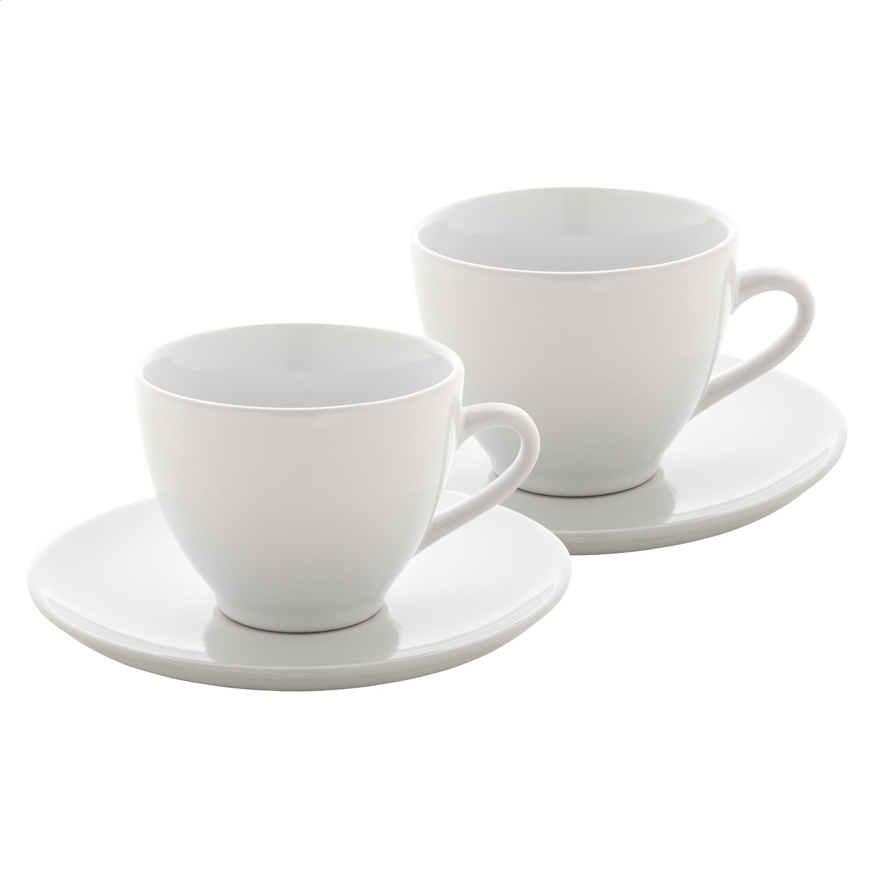 Set tasse cappuccino en céramique comprenant 2 tasses et 2 soucoupes, 150 ml. Livré dans une boîte en carton blanc.