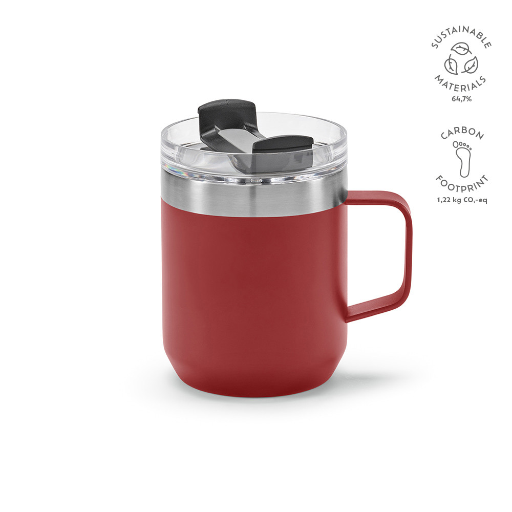 Le mug Ebro de 430 ml (350 ml pour les liquides) est en céramique, avec un couvercle et une base écologiques en liège. Il résiste à 125 lavages au lave-vaisselle (sans le couvercle ni la base). Le couvercle protège la boisson contre les éclaboussures et la base en liège est antidérapante. Un modèle distingué et naturel, la combinaison parfaite du style et de la praticité. Emballé dans une boîte individuelle.