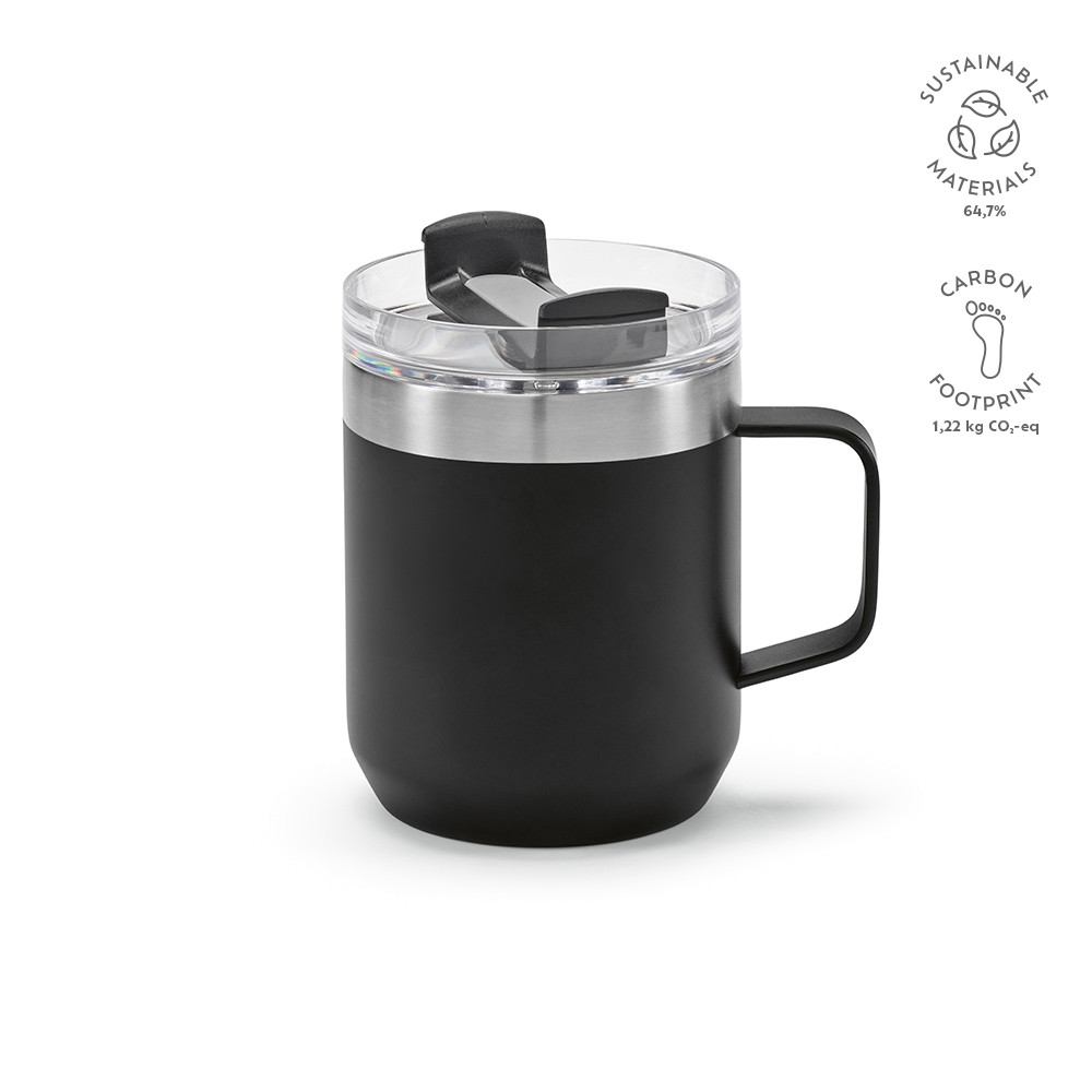 Le mug Ebro de 430 ml (350 ml pour les liquides) est en céramique, avec un couvercle et une base écologiques en liège. Il résiste à 125 lavages au lave-vaisselle (sans le couvercle ni la base). Le couvercle protège la boisson contre les éclaboussures et la base en liège est antidérapante. Un modèle distingué et naturel, la combinaison parfaite du style et de la praticité. Emballé dans une boîte individuelle.