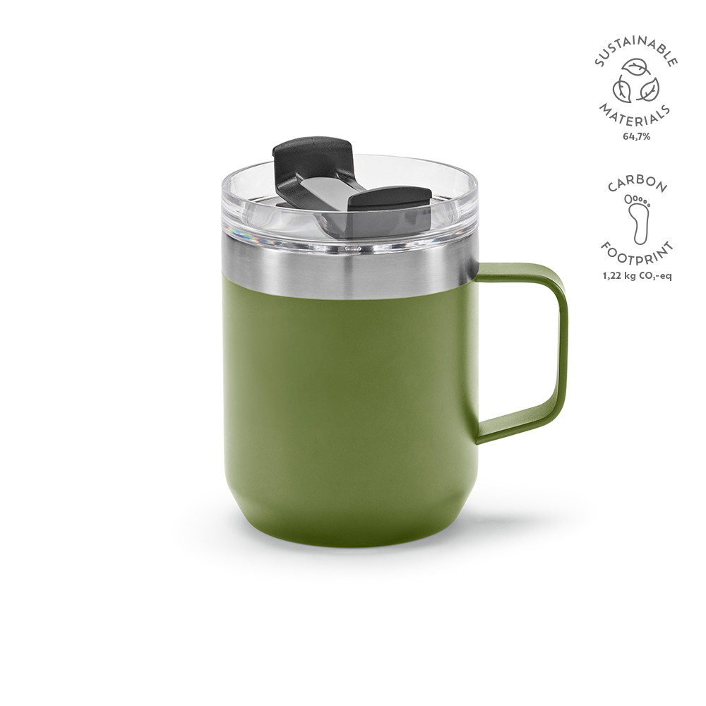 Le mug Ebro de 430 ml (350 ml pour les liquides) est en céramique, avec un couvercle et une base écologiques en liège. Il résiste à 125 lavages au lave-vaisselle (sans le couvercle ni la base). Le couvercle protège la boisson contre les éclaboussures et la base en liège est antidérapante. Un modèle distingué et naturel, la combinaison parfaite du style et de la praticité. Emballé dans une boîte individuelle.