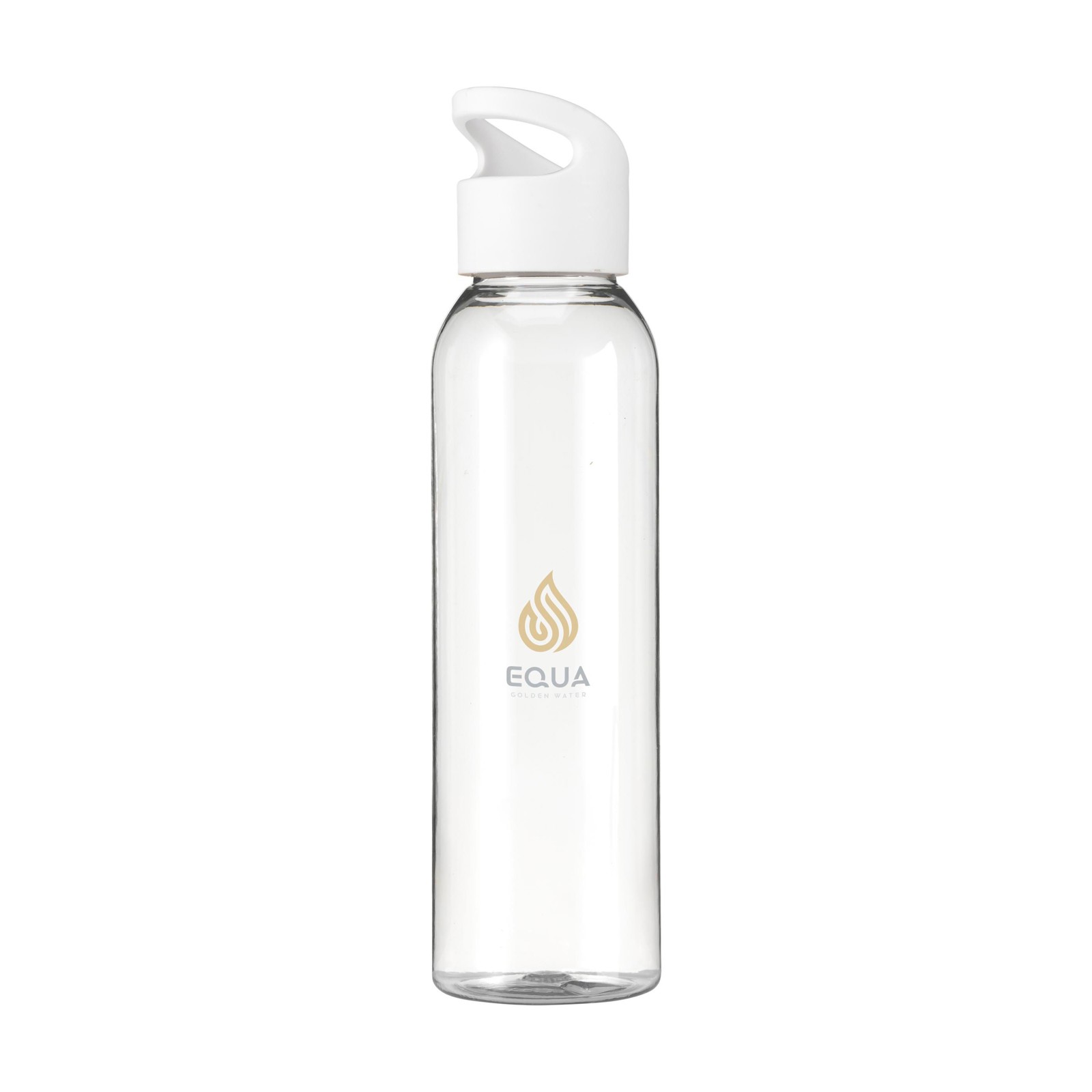 Luxeuse bouteille d'eau en RPET transparent. Avec bouchon à vis pratique en plastique. Anti-fuites et réutilisable. Ne passe pas au lave-vaisselle. Capacité 650 ml. Certifié GRS. Matière recyclée totale : 82%.