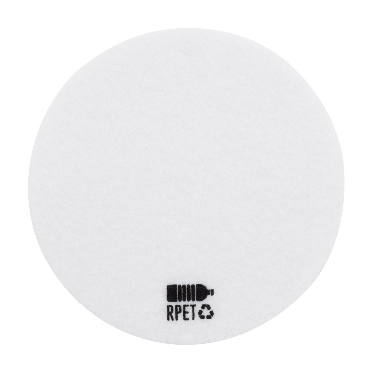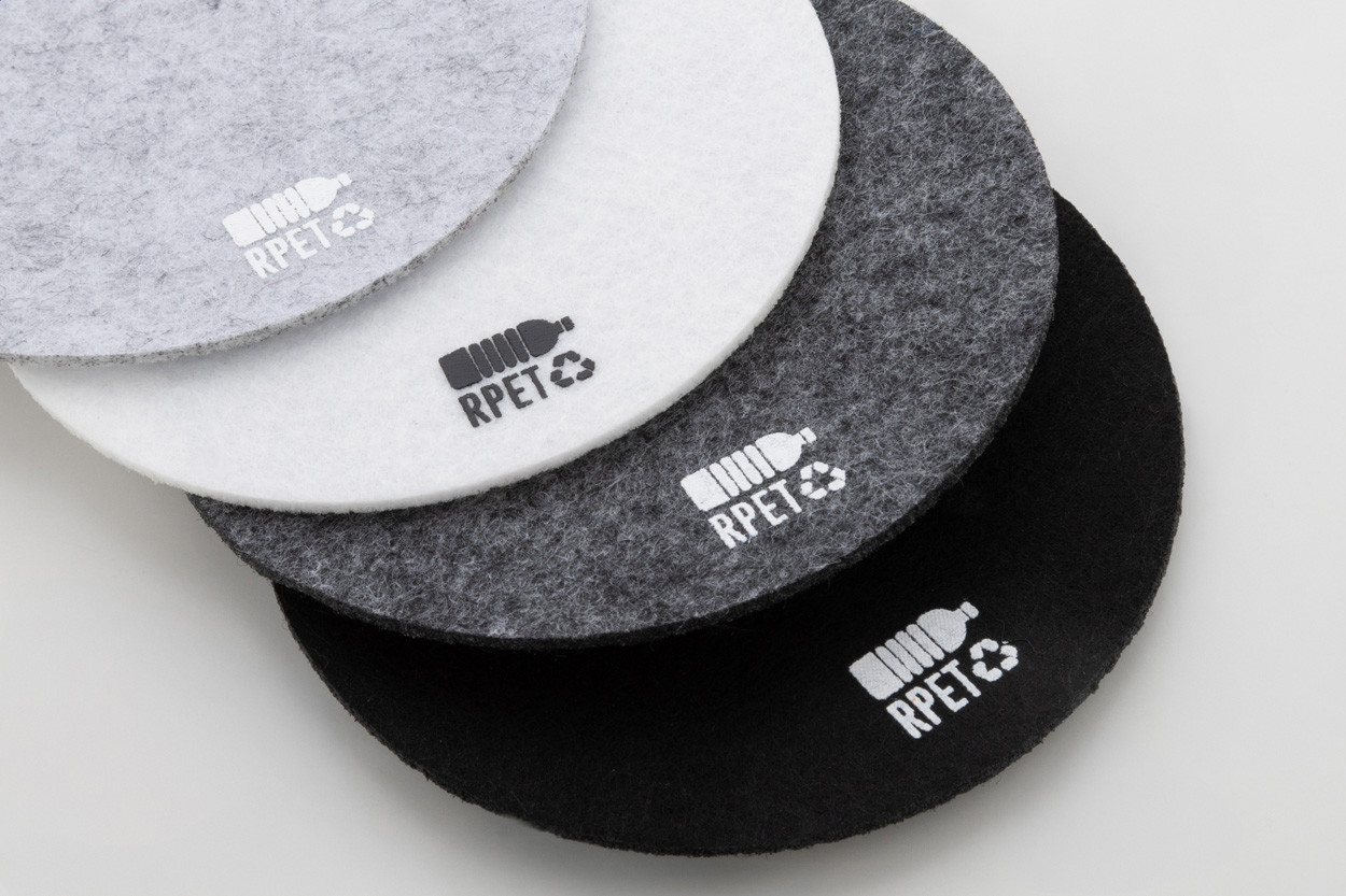 Sous-verre rond en feutrine RPET. Labélisé RPET.