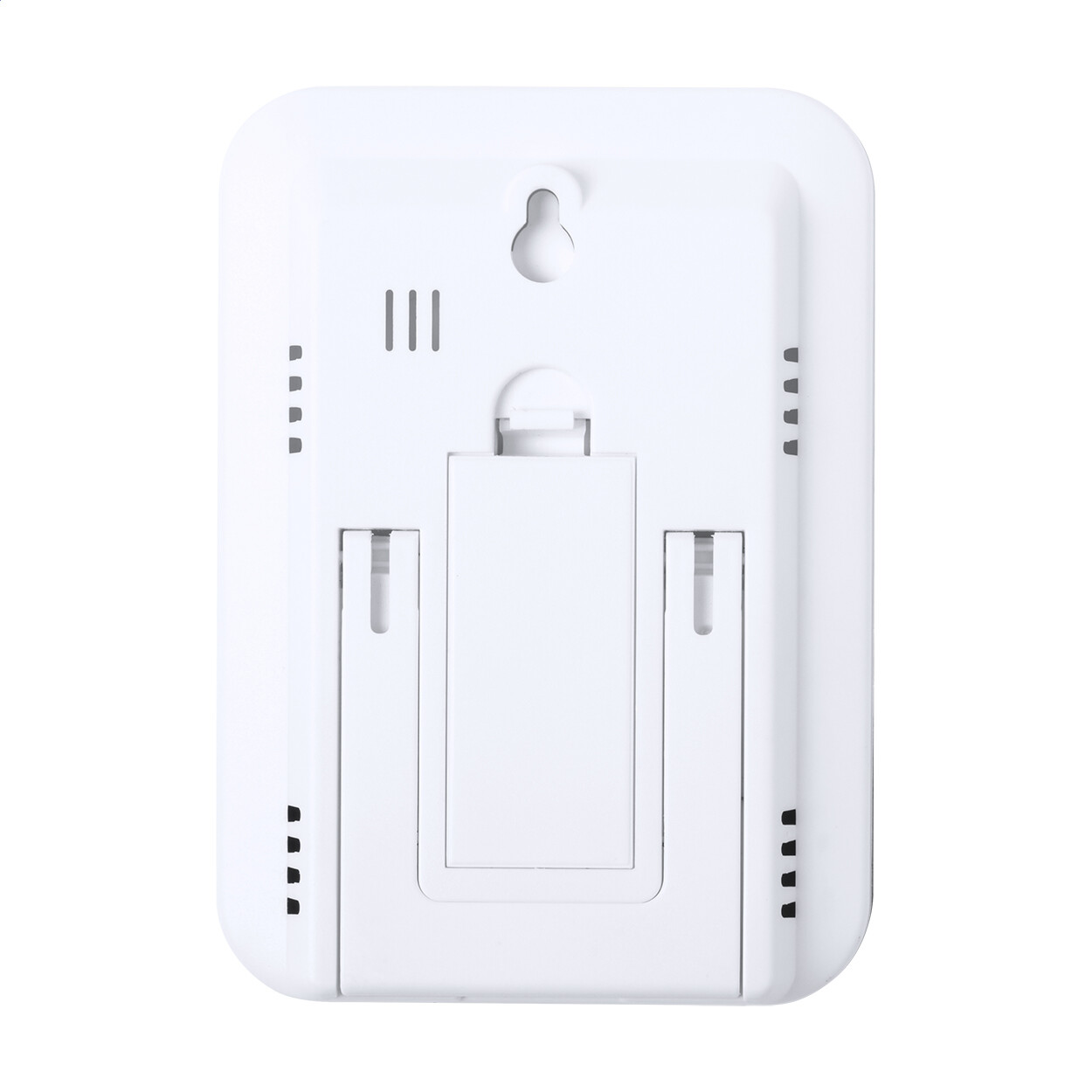 Station météo et horloge numérique avec panneau avant en bambou. Fonctions: réveil, calendrier, thermomètre, hygromètre et mémoire des variations de températures. Fonctionne avec 2 piles AAA, livrée sans pile.