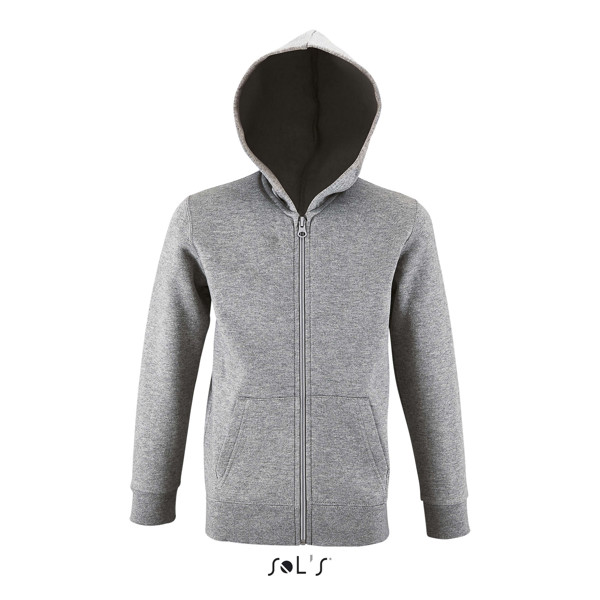 SOL'S STONE KIDS, VESTE ZIPPÉE À CAPUCHE, 50% coton Ringspun 50% polyester Molleton gratté 260, Manches montées, 2 poches kangourou, Capuche, Poignets et bas en bord côte, Tubulaire, (1) Gris chiné : 50 % coton / 50 % polyester. Pour la correspondance des tailles, veuillez vous référer au size chart dans la documentation produit.