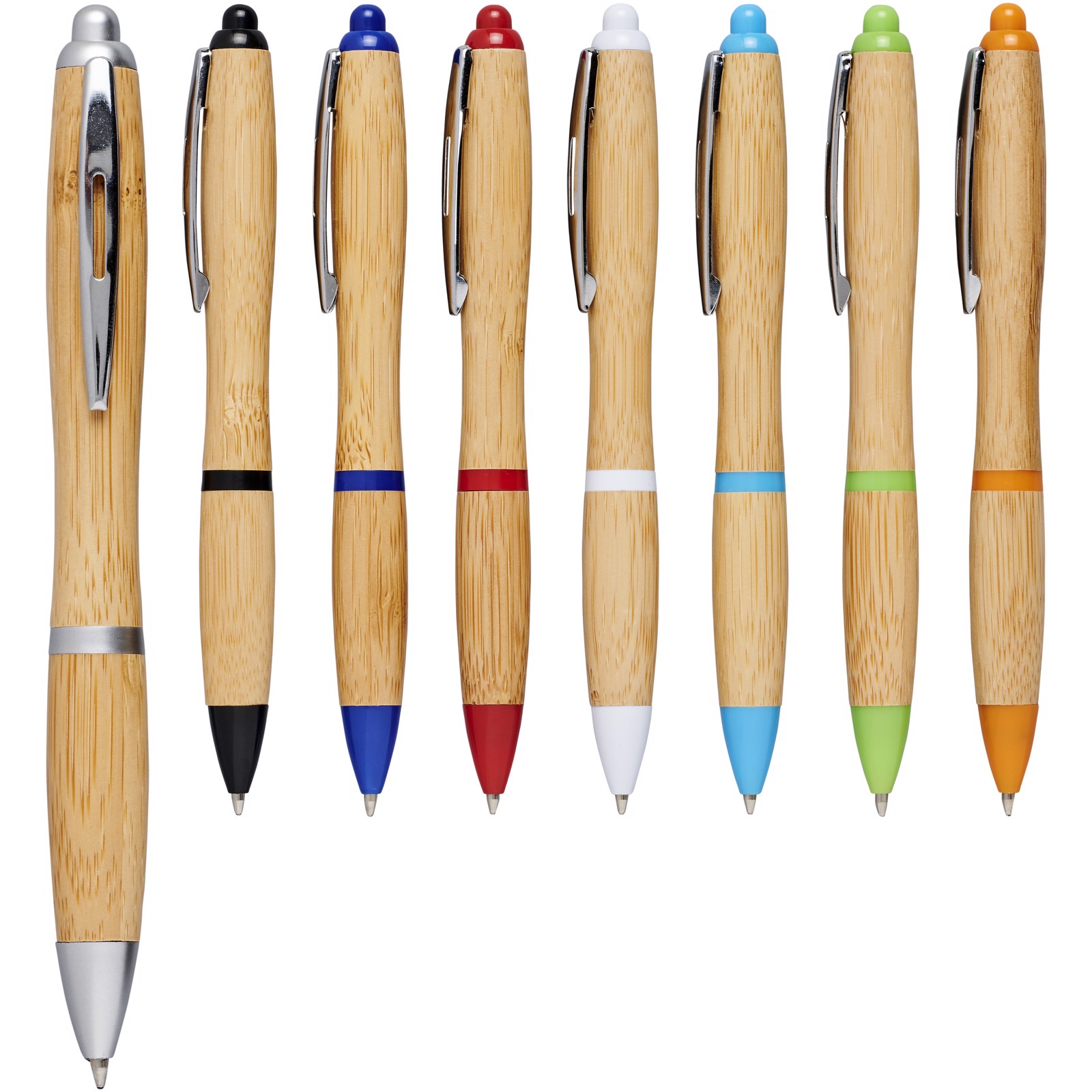 Stylo bille en bambou Nash (encre bleue) - Naturel / Argent