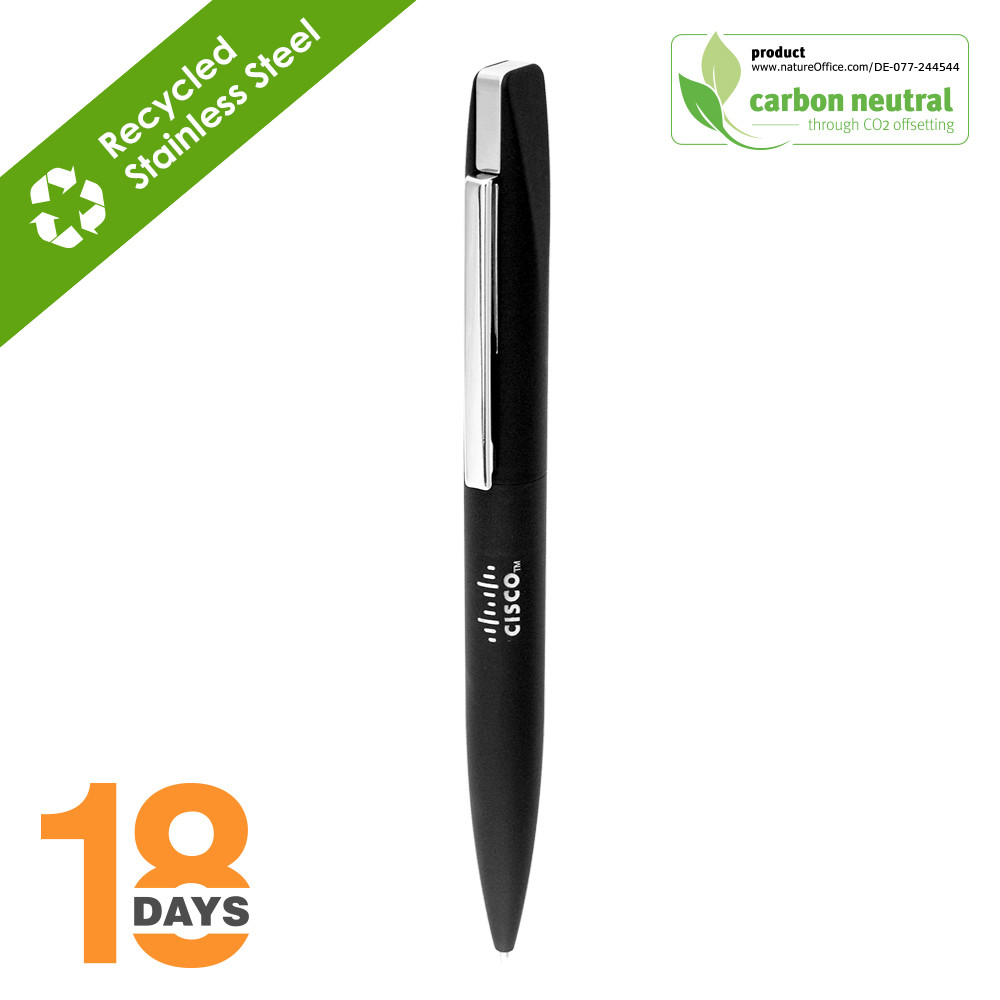 Slim, Stylo ouverture twist. STOCK. Recycled stainless steel & ABS Recharge plastique Allemande Encre Noire 1mm, Type Cross, 1500 m d'écriture