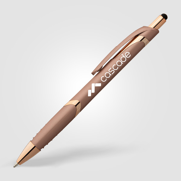 Le Stylo Joplin Softy Rose Gold avec Stylet présente des accents de rose gold très élégants qui mettent en valeur les couleurs luxueuses et douces du corps. Ce stylo à bille en plastique à cliquet rétractable est doté d'un corps caoutchouté doux avec un grip assorti, et d'un stylet pour tous vos appareils numériques à écran tactile. Personnalisez-le avec une impression en sérigraphie 1 couleur ou avec ColourJet, notre technologie d'impression en couleurs, pour faire passer votre logo et votre message publicitaire lors d'événements de réseautage, de salons professionnels, de conférences et d'autres opportunités marketing. Ce stylo élégant est un moyen idéal de promouvoir votre marque et de ravir vos fans !