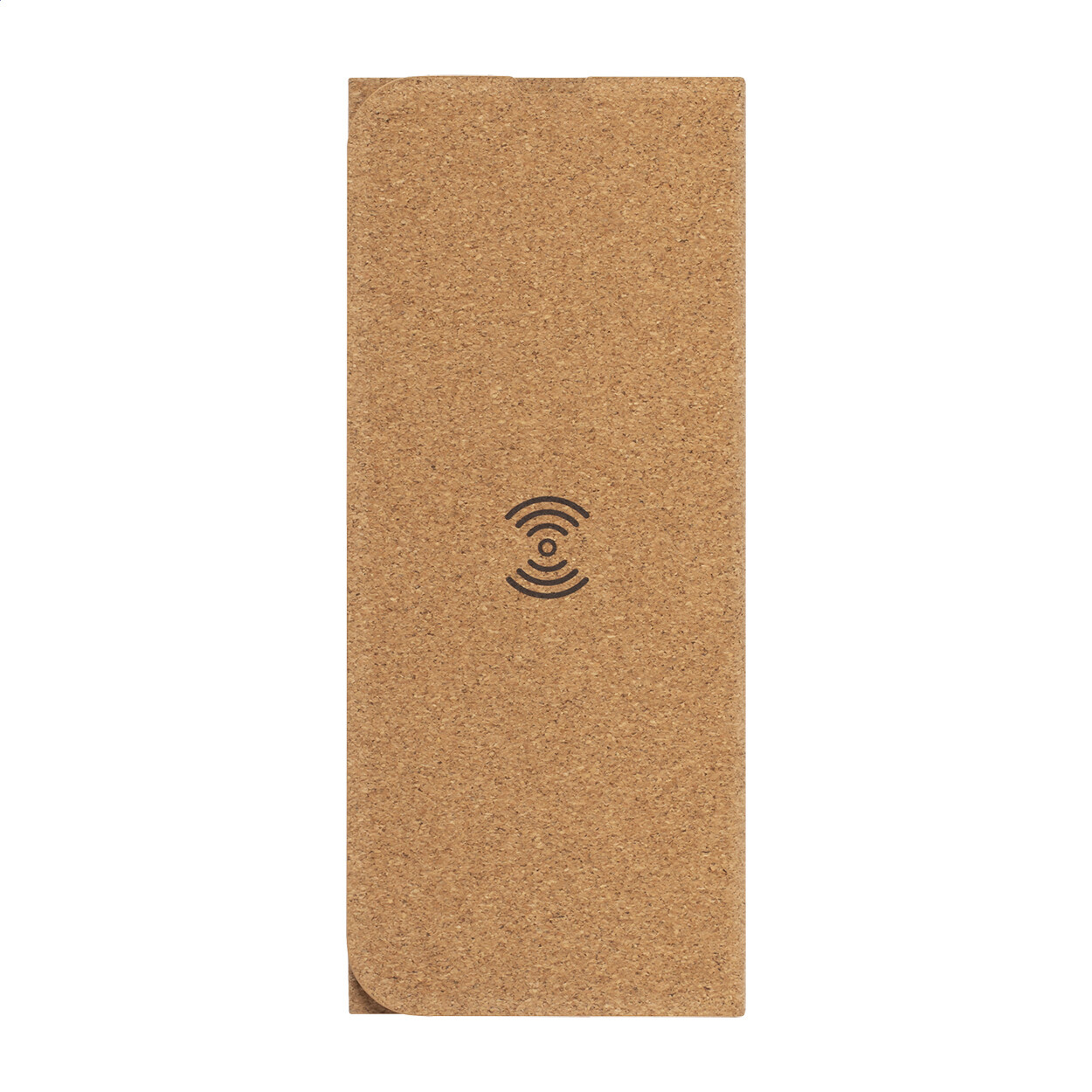 Tapis de souris en liège naturel avec chargeur induction (5W) et support téléphone portable intégré. Câble de chargeur USB-C inclus. Livré dans une boîte en papier kraft.