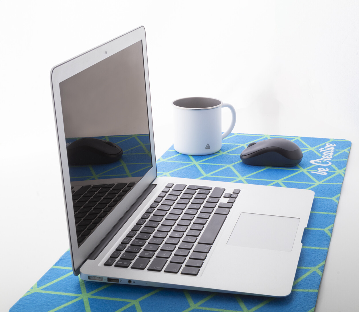 Tapis de bureau en feutrine RPET sur mesure, tapis de souris avec base antidérapante en caoutchouc. Le prix comprend l'impression en sublimation. Quantité minimale : 50 pièces.