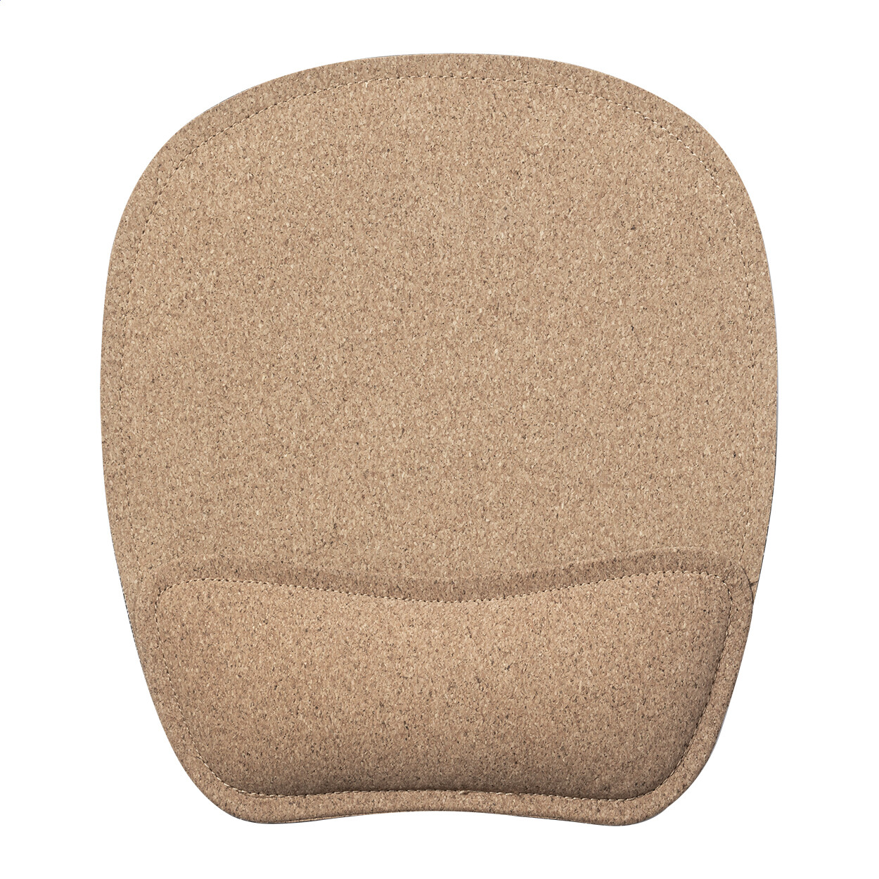 Tapis de souris en liège naturel avec repose-poignet ergonomique et base en silicone.