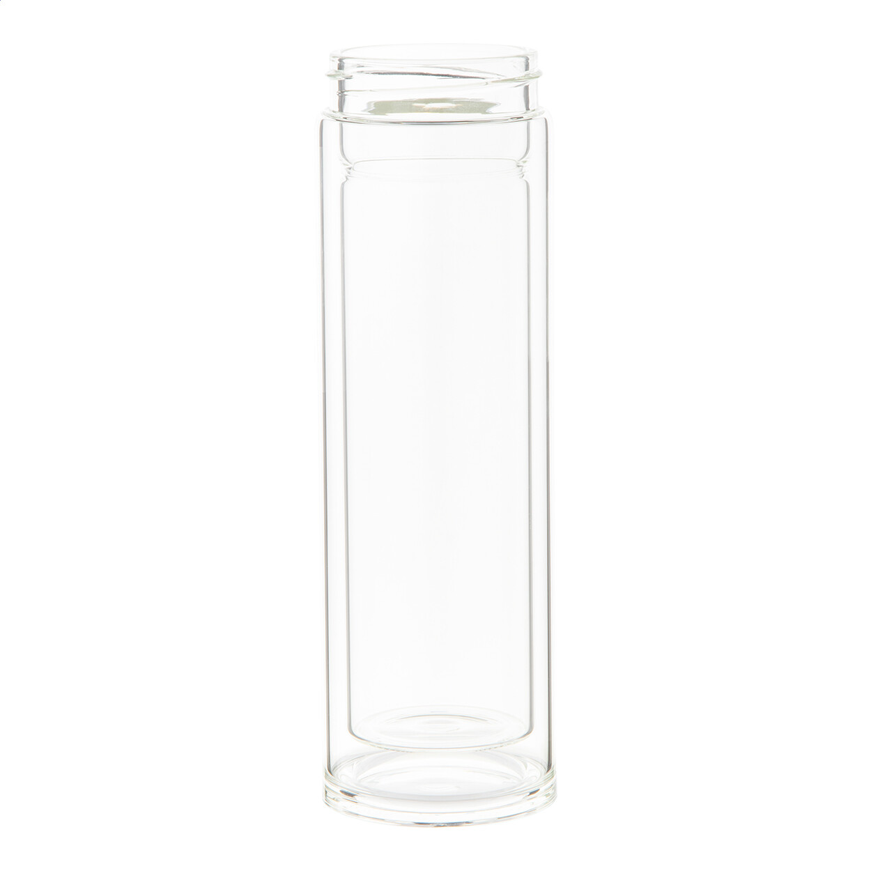 Thermos isotherme à double paroi en verre borosilicate avec infuseur à thé et couvercle en bambou. 420 ml.