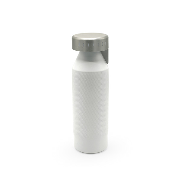 Gourde Timeos en acier inoxydable recyclé de 690 ml (650 ml utiles). Son isolation sous vide à double paroi garde les boissons chaudes jusqu’à 30h et froides jusqu’à 72h. La technologie LED intégrée au bouchon vous rappelle de boire toutes les 30 minutes. Une façon intelligente et engagé de rester hydraté, avec sa finition rainurée et son design unique. Livrée dans un emballage kraft individuel "seconde vie"