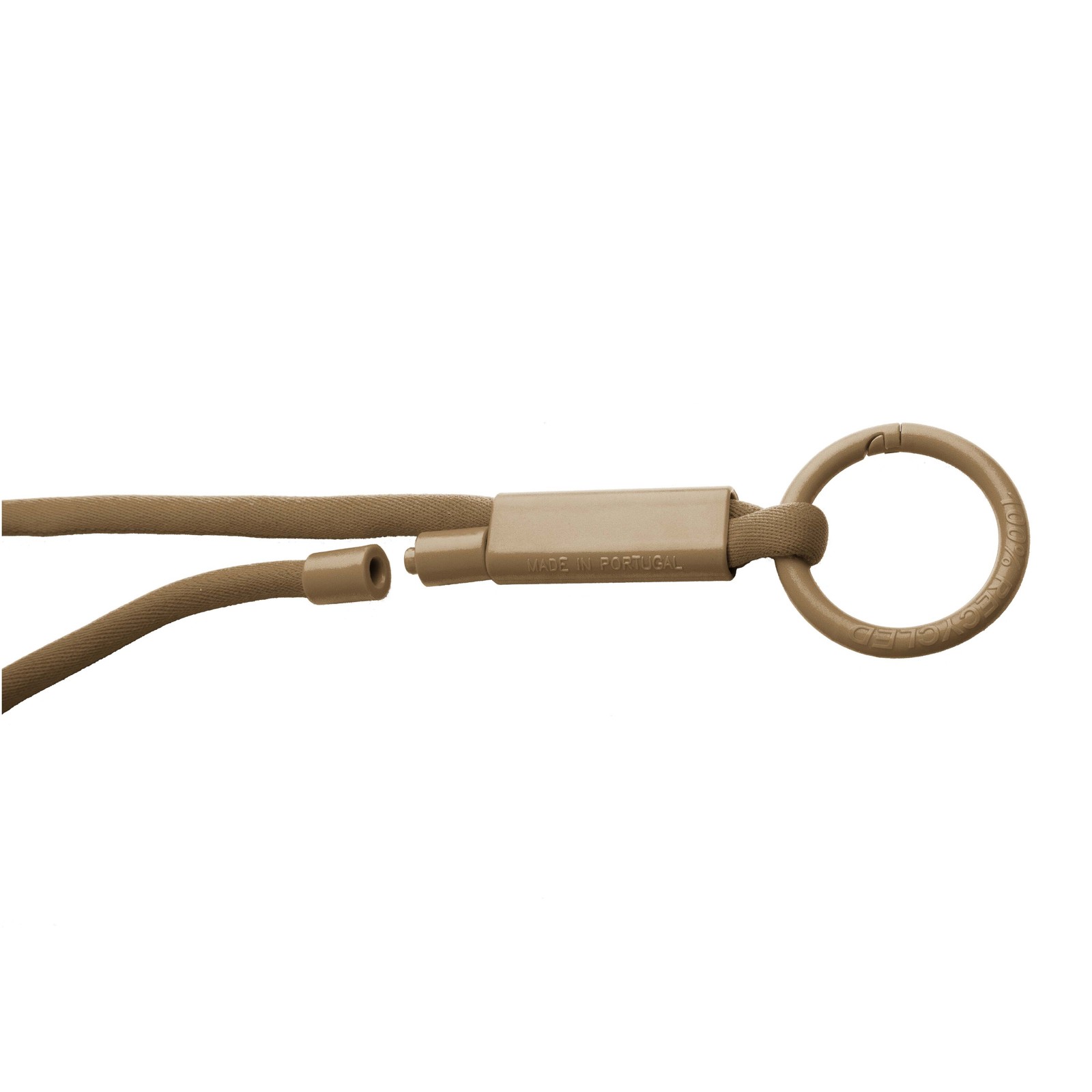 Cordon en RPET fabriqué à partir de bouteilles en PET recyclées. Avec un mousqueton en métal à fermeture sécurisée. Certifié GRS. Matière recyclée totale : 58%.