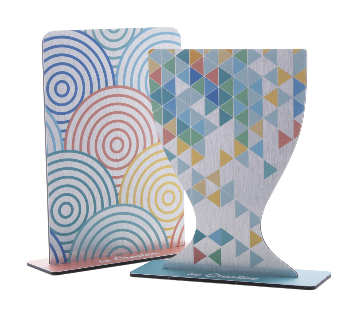 Trophée en composite et aluminium brossé impression en quadri. Le prix comprend l'impression UV-LED sur un côté. Quantité minimum: 50 pièces.