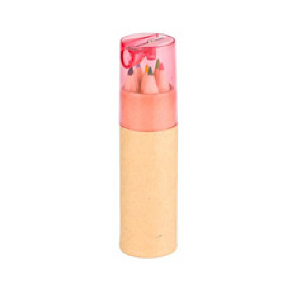 Tube De 6 Crayons De Couleur Avec Taille-Crayon - Rose Clair