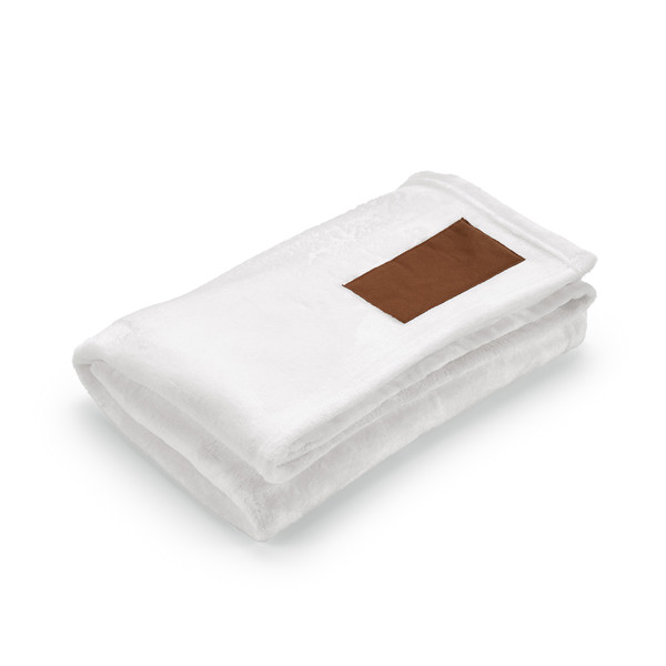 Plaid polaire 30% polyester et 70% RPET polyester (180 g/m²). RPET polyester est matière fabriquée à partir de bouteilles en PET recyclées et de fibres textiles recyclées. Fourni avec une boucle de transport pratique. Dimensions déplié 150 x 120 cm.