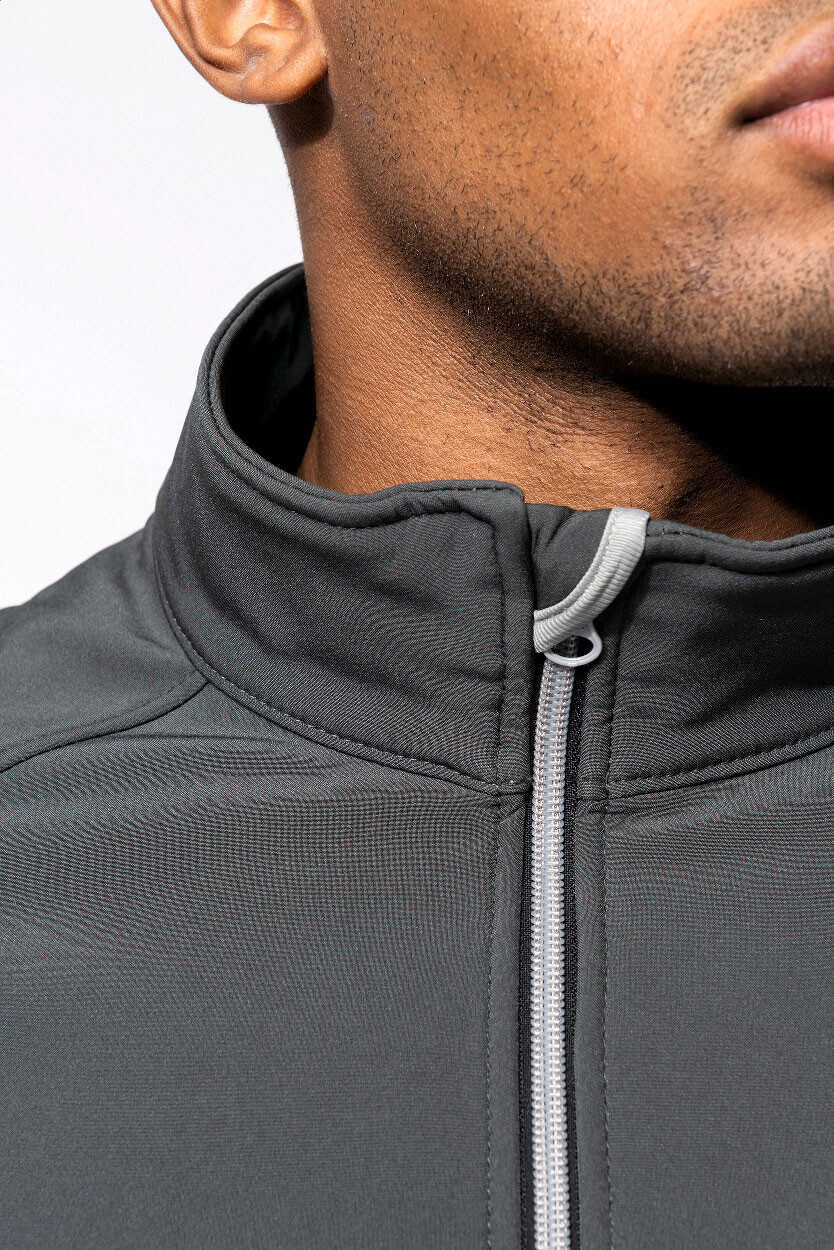 Veste zippée respirante, coupe-vent et imperméable en combinaison softshell-polyester avec capuche et poches latérales zippées.