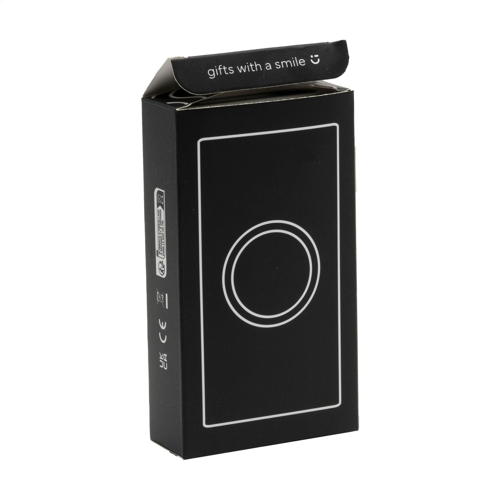 Chargeur externe sans fil en ABS extrêmement complet avec une batterie Li-ion intégrée (8 000 mAh). Le boîtier est fabriqué à partir de ABS 100% recyclé certifié RCS. Equipé d'une sortie normale, d'une entrée de type C et d'une technologie de charge sans fil de 5 W. Chargeur sans fil pour les appareils mobiles qui supportent la charge sans fil QI (dernière génération d'Android et d'iPhones à partir du modèle 8). Entrée : CC 5 V / 2,1 A. Sortie USB : CC 5 V / 2,1 A. Sortie sans fil : CC 5 V / 1 A. Avec des voyants lumineux et un bouton marche / arrêt. Câble de charge USB-C et mode d'emploi inclus. Certifié RCS. Matière recyclée totale : 25%. Emballage par pièce.