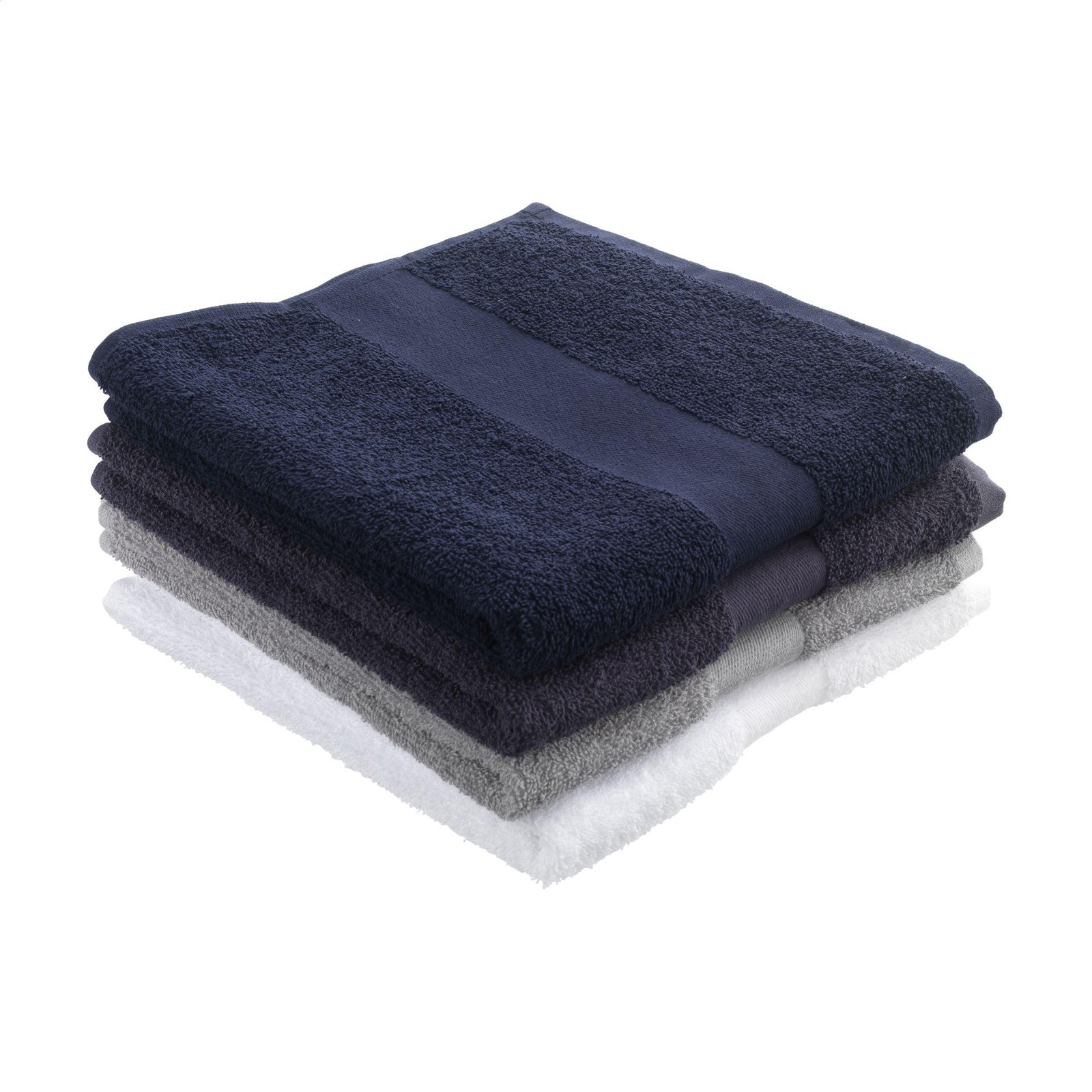 Cette serviette de la marque Wooosh est composée à 50% de coton recyclé et à 50% de coton. La serviette a une boucle pratique et une bande tissée et est magnifiquement finie avec une bordure en coton. La douceur du tissu éponge tissé serré donne une sensation de luxe et de confort après une douche revigorante ou un bain chaud. Les fibres des 400 grammes de coton éponge absorbent très bien l'humidité et sont agréables sur la peau pendant le séchage. Ce textile de salle de bain a un look intemporel et s'intègre dans tous les intérieurs. Ce produit est certifié GRS et fabriqué avec une attention particulière portée aux personnes et à l'environnement.